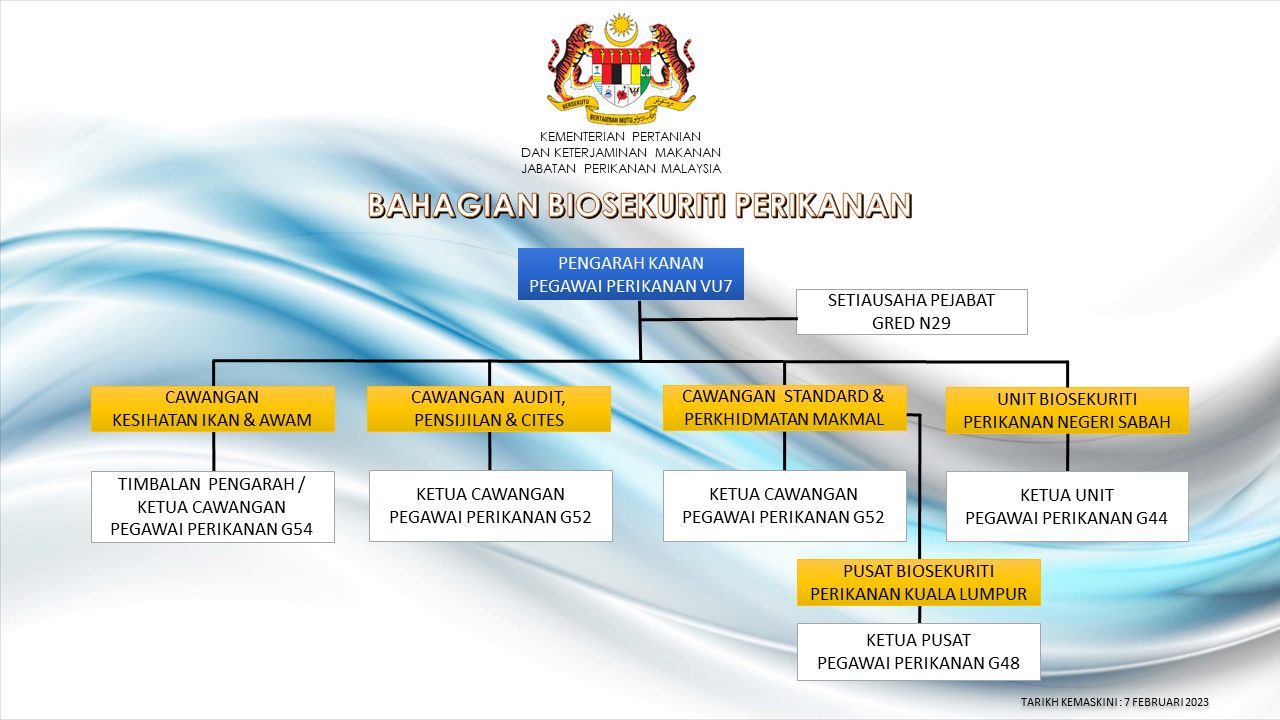- Merancang dan memantau program pembangunan dan pengukuhan ketrampilan juruaudit biosekuriti perikanan.